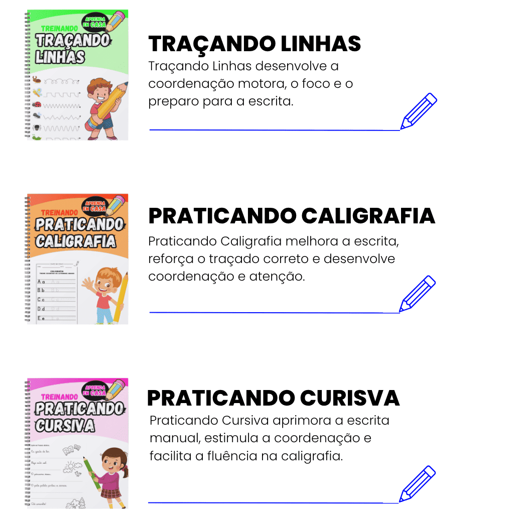 Transforme o momento de aprender a escrever em uma experiência divertida, educativa e cheia de progresso visível, dentro ou fora da sala de aula